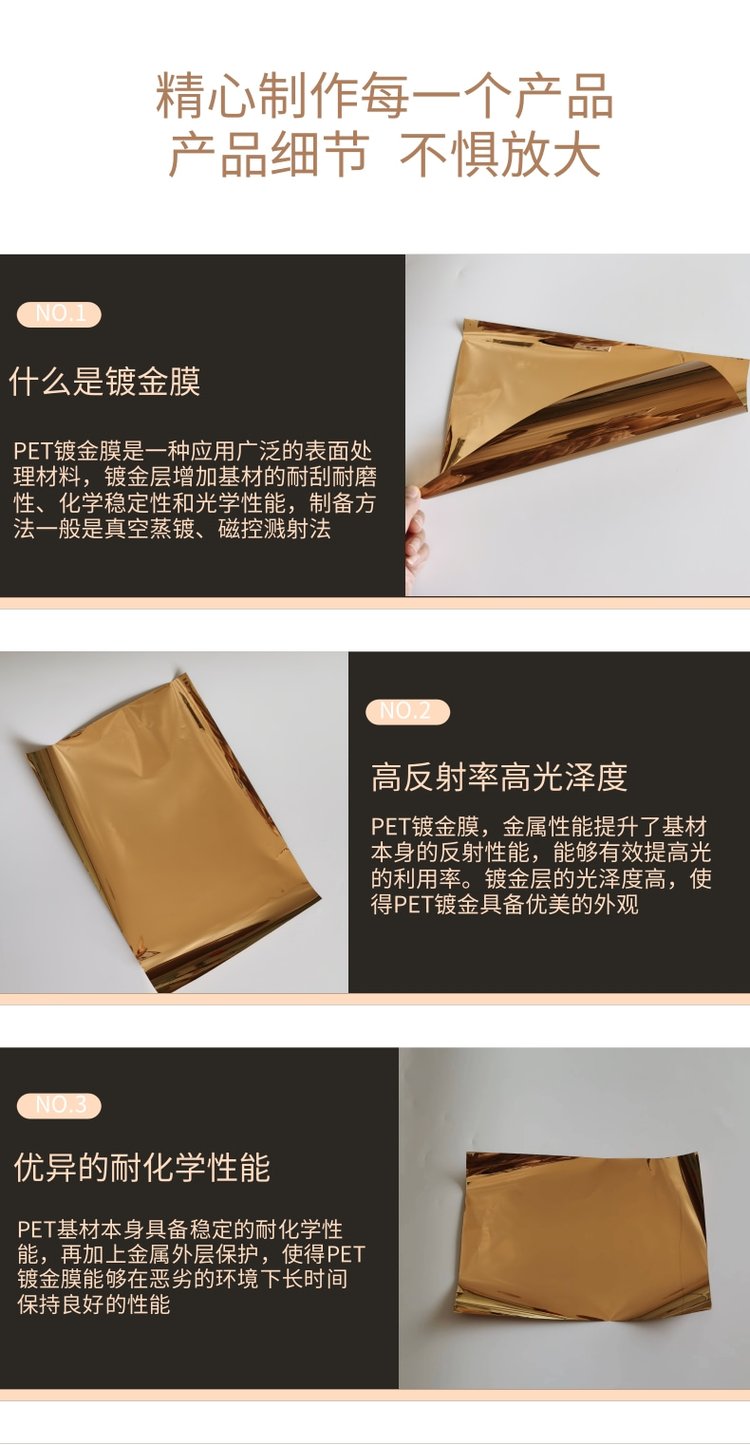 PET双面镀金反射膜 可用于太阳能电池光学仪器和电子触摸屏